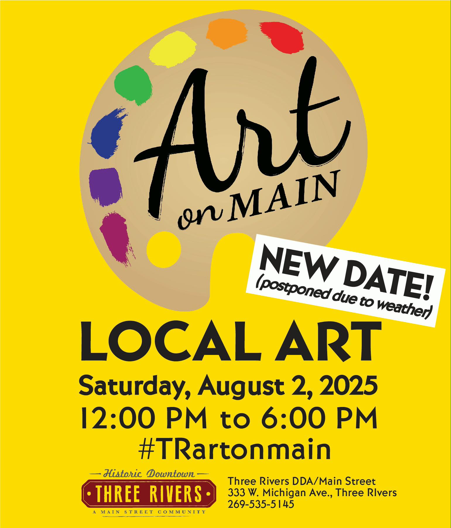 Art on Main, put on by the Three Rivers DDA in the Three Rivers historic downtown, was storm-delayed in 2025, but was presented on a beautiful day on Saturday, August 6. Artwork was sold and a good time was had by all. Some Three Rivers Artists Guild members, along with other area artists and artisans, had booths along Portage Ave, around the corner from Main Street. Not exactly Art on Main, so in it’s story, the Three Rivers Commercial News just called it “Art On The Street”.